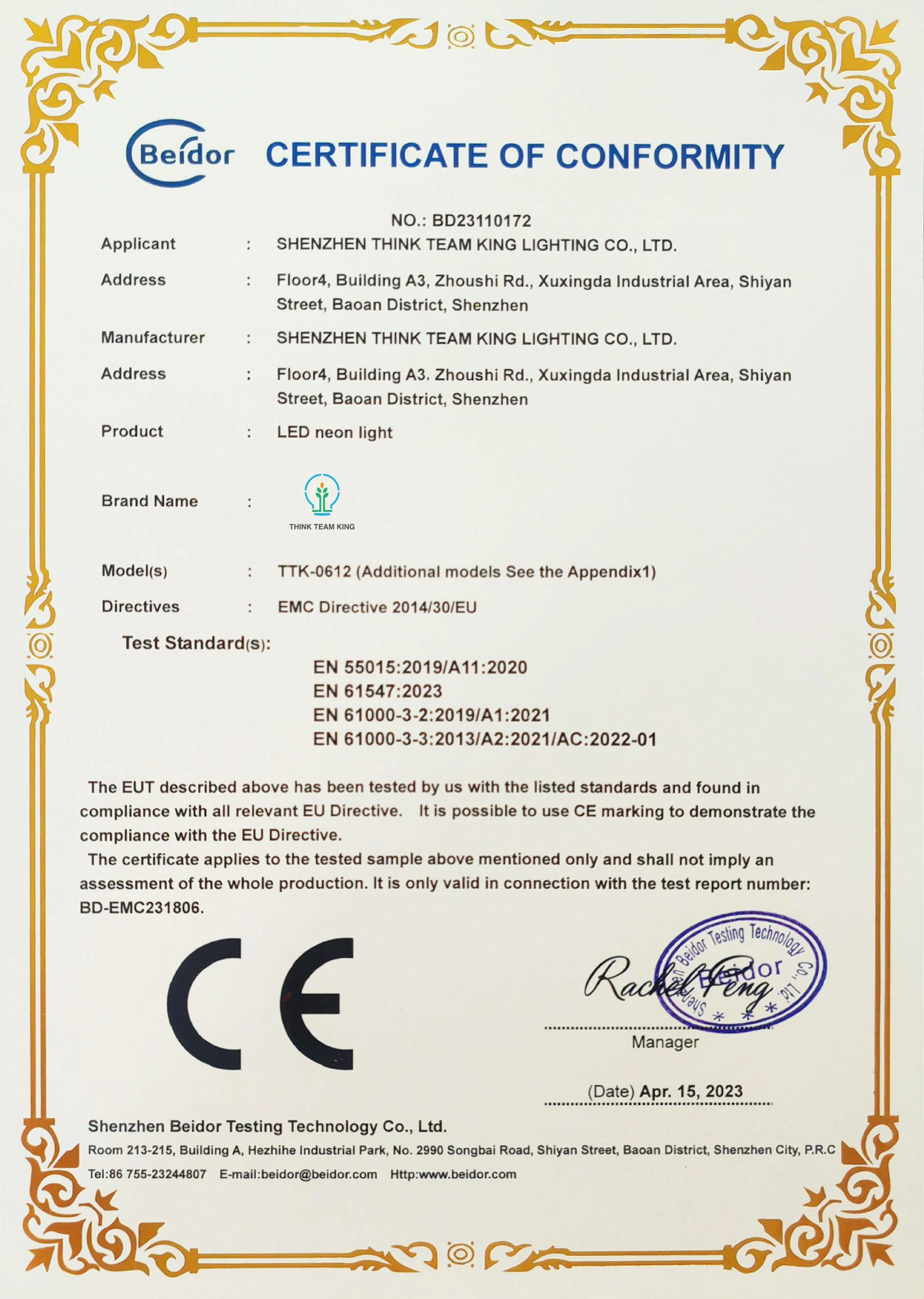 L'utilisation séparée de néons de silicium de 20mm fait l'enseigne au néon. Comme 360 degré acrylique enseigne au néon